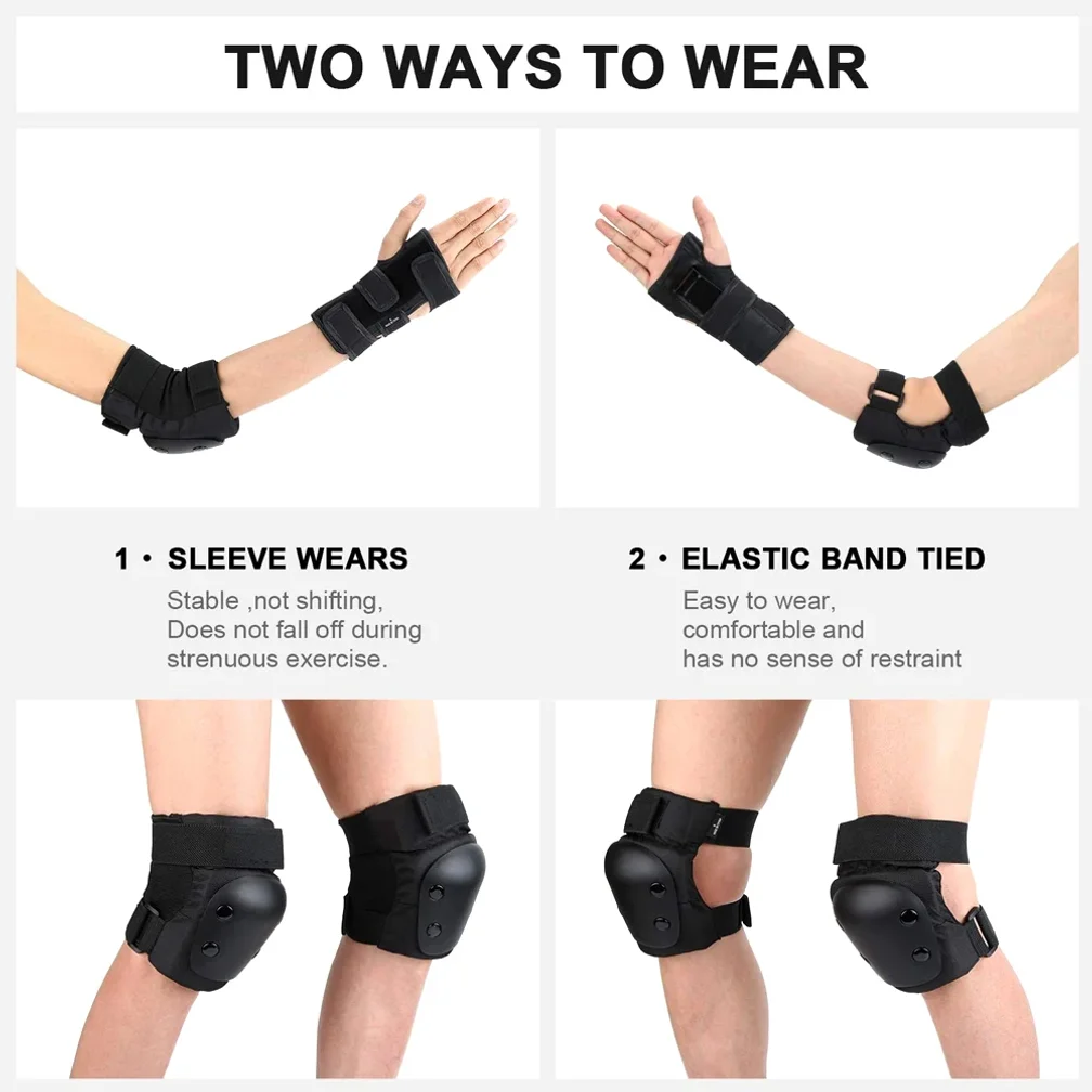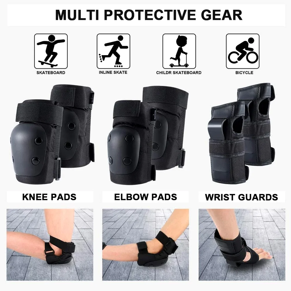This 6-in-1 protective gear set provides reliable joint protection for both adults and kids during high-energy activities. The set includes knee pads, elbow pads, and wrist guards designed to absorb impact and reduce injury risk while inline skating, roller skating, skateboarding, or riding a scooter. Durable outer shells combined with cushioned padding offer strong protection without sacrificing comfort.