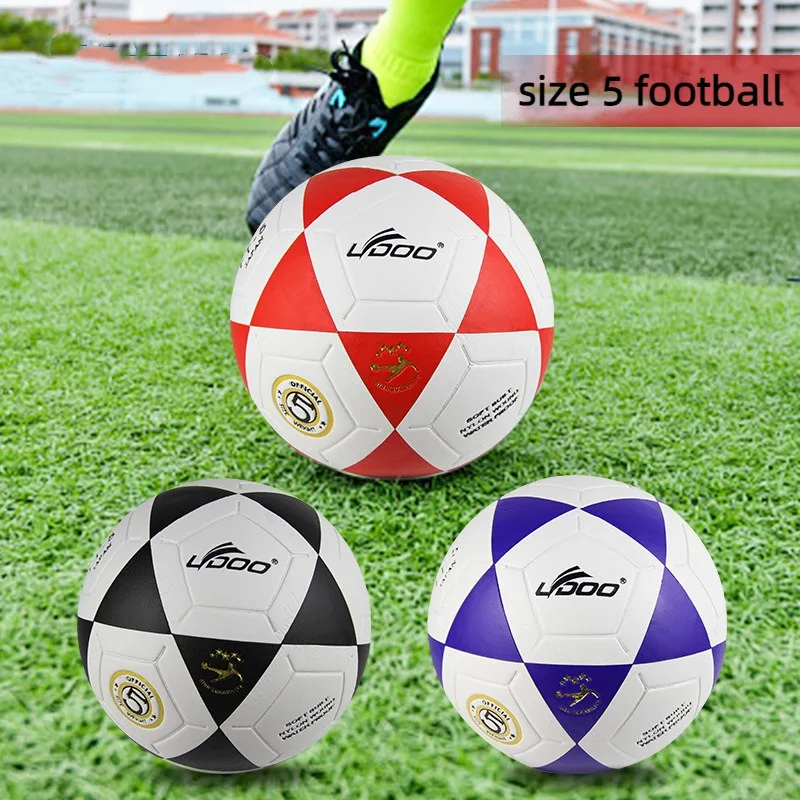 This standard size 5 soccer ball features a seamless PVC construction designed for excellent durability and long-lasting performance. Its wear-resistant and anti-leakage design ensures consistent shape, bounce, and air retention, making it ideal for frequent training sessions and match play. The smooth surface provides reliable flight and control, suitable for players at any skill level.